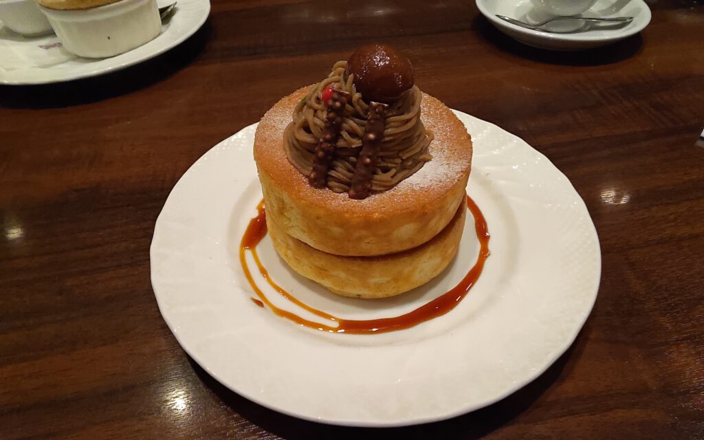 パンケーキの上に、モンブランケーキを食べているような贅沢な味わいでした。