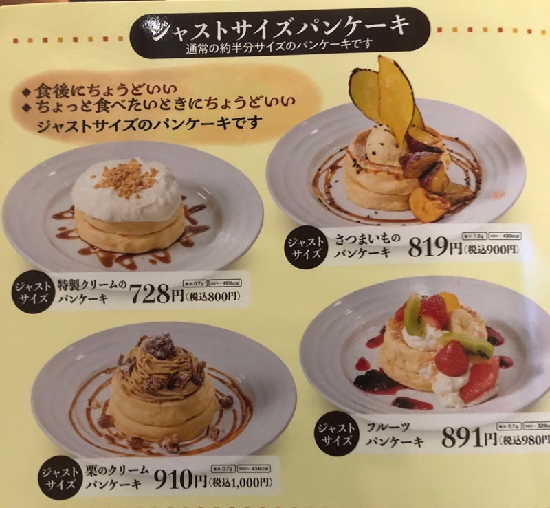 ↓「ジャストサイズパンケーキ」は食後にちょうどいい